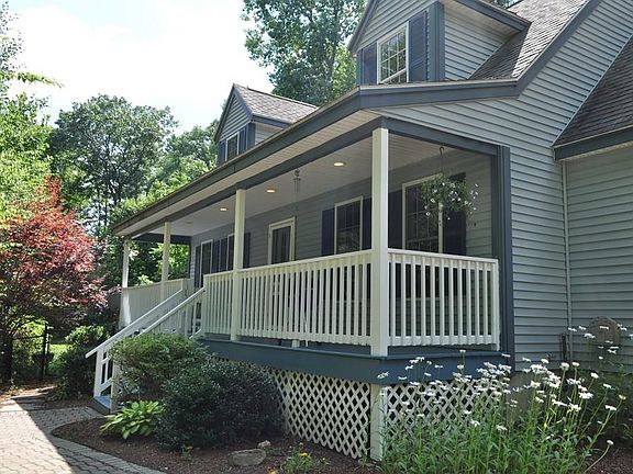 Come home to this well kept dormered cape. The full length, wide farmers porch welcomes you to your private oasis. Surrounded by mature landscaping and tall trees, you'll love the huge, fully fenced yard beside the house, which you can overlook from the plentiful windows of your large living room. The open plan kitchen and dining rooms are perfect for easy entertaining, or quiet dinners with family. The oversized 2-car garage has a closed off storage room above, for potential future finishing as a bonus room. Located just a mile from QRHS & JHS, and about 2.5 miles from Barre Commons.