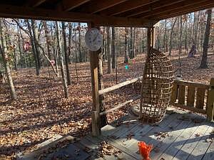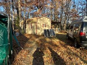 Here is your 15 Acre getaway off grid furnished hunters type cabin with Electric available if desired. A private place for when the Mud hits the fan. Solar electric setup. Cistern water source. 20 X 20 shop with Tractor & tools, work bench etc. Wooded property lays good and within walking distance of Bull Shoals Lake. County road through corner of property near its end. Mostly fenced and nice sized trees with some park like setting. Includes Shop, riding mower, JD Mod 830 Diesel Tractor w Front end Loader, Generator and numerous furnishings. Cabin includes Wood burning stove and propane cooking stove, 12V frig, etc.