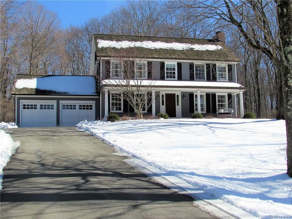 Beautiful Colonial enjoys 7 acres of privacy on historic Quaker Hill. Bluestone walkway leads you to covered front porch. Enter this special home & you'll fall in love! So much to appreciate, beginning with the large, light-filled LR w/Fireplace. Formal DR w/hardwood and wainscoting. The spacious Kitchen is open and bright with an abundance of cabinets, plus a dining area w/hardwood. Upstairs, you will find the lovely MBR Suite w/hardwood & sparkling white spa-like full bath w/marble topped vanity. Three additional bedrooms, 2 w/hardwood, full hall bath w/marble. Finished basement offers a Family Rm, home office w/shelves & storage, plus a full bath & laundry room. Additional amenities: Central Air, Whole House Generator, Security System w/smoke alarm. Hardwood floors throughout most of the house. 10 minutes from Metro North, quaint shops, eateries, golf course, town park w/lake, Daryl's House Music Club & Restaurant!