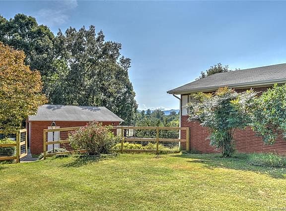 Beautiful mountain views are yours from the front and back of this charming 3 bedroom, 1.5 bath brick ranch, that sits on over an acre of land. This home has only had two previous owners! Relax on the spacious and unique side patio overlooking the expansive yard. Large unfinished basement with a one car garage. There's even a shower and toilet in a stall in the basement; a great pet washing area. Off the garage is your own personal greenhouse. There is also a detached 26'x26' 2 car garage with tons of room for more storage. Large fenced front yard for the fury family members. Bring the chickens....the chicken coop is included! Convenient access to I-40 will have you to downtown Asheville in about 20 minutes. At this price, this is a must see!