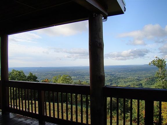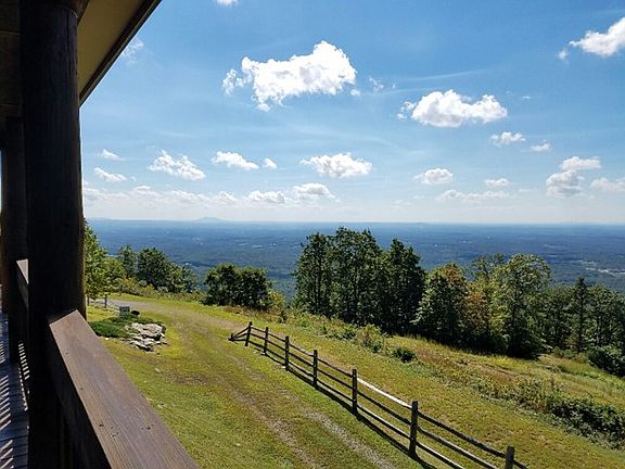 Awesome 180 degree view of the Piedmont and surrounding mountain ridges with clear- day views to Winston Salem! Beautiful sunrises and sunsets. This classy cabin features: log, wood and stone accents in and out, double master suites, 1680 sq. ft., 2.5 BA, open floor plan with a raised stone hearth gas log fireplace, 5 sliding glass doors to enjoy the view from the inside and provide easy access out to the wrap-around deck. Windows and sliders have custom double- insulating blinds. Laundry is on the main level also a half bath for guests. All appliances convey. Master bedroom on the main level has a great view and you can step right out on deck. This master bath has a jetted tub, separate shower and double sinks. On the upper level you have a master suite featuring a family room with a Dutch West wood burning stove, large bedroom with south and east views, master bath with custom double sinks, jetted tub and separate shower. Heating sources are an oil monitor, gas log fireplace and
