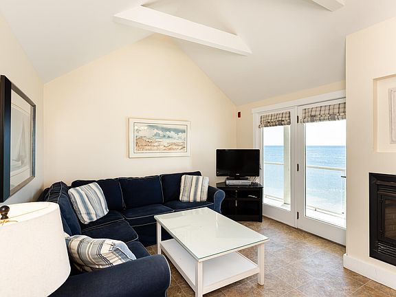 Spectacular waterfront 2 BR condo overlooking Cape Cod Bay! Part of the well-managed Crow's Nest association, unit 16 has a lot to offer the savvy Buyer. This top floor condo has commanding water views, a fully equipped and updated kitchen with new quartz countertops and appliances, an ensuite primary bedroom with a private balcony overlooking serene Pilgrim Lake, vaulted ceilings, in-unit laundry and assigned parking. Those looking for an investment will be excited about the +$45K in annual rental income. In addition, the condo fees protect your investment by covering flood insurance, as well as hot water and propane gas for the fireplace. Crow's Nest offers great opportunity for year-round enjoyment and rental income.