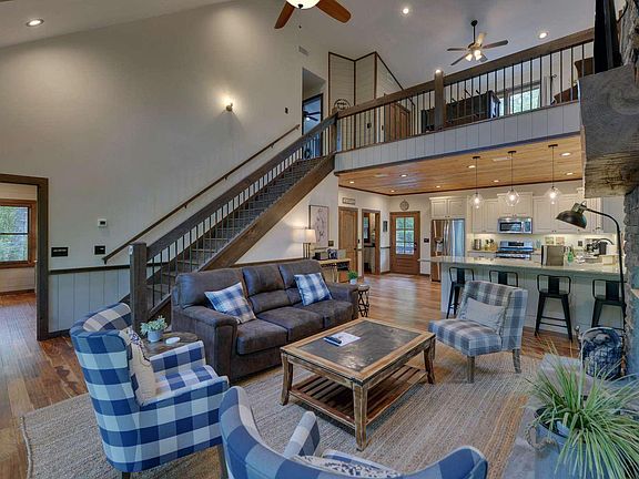 Nestled in the heart of Blue Ridge and less than 5 miles from downtown, this modern rustic home is everything you've been waiting for. Located in the Little Sugar Creek Estates subdivision with all paved access and mountain views, the location is key here. This cozy yet spacious floor plan features 3 bedrooms, 2 and a half baths, a loft area, and both the master and laundry on the main level for easy access. Great attributes of the home include soaring cathedral ceilings, hardwood floors throughout, sheetrock with wood textures, granite countertops, two rock fireplaces, modern accents galore, and so much more! Situated on 2.19 gentle, level acres, a gorgeous creek flows through the spacious backyard that you can view from your large back deck or outdoor firepit. This one will not last long! Great Rental History.