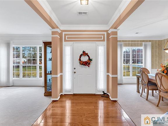 Introducing The Ponds, a vibrant 55+ community nestled in Monroe Township. This remarkable 2 bed, 2 bath Redwood model offers spacious sophistication, all one level with a traditional floorpan including a living room, dining room, family room, and eat-in kitchen. As you step through the door, a welcoming foyer adorned with gleaming wood flooring sets the stage for the elegance that lies within. The formal living room invites you to unwind in style, with its cozy gas fireplace casting a warm glow and creating the perfect ambiance for intimate gatherings. The formal dining room is light and bright with plenty of space for large furnishings. Continue beyond the dining room to find the classically elegant eat in kitchen. The kitchen features corian countertops, a center island, and ample storage with 42-inch cabinets with quiet close hinges and pull-out drawers for easy storage. Prepare meals with the convenience of a gas stovetop and microwave. A full sized pantry offers additional storage for food and additional cookware. Adjacent to the kitchen, an oversized family room bathed in natural light awaits. If you enjoy the outdoors, take advantage of spending time on the patio with awning for shade. Retreat to the spacious primary bedroom suite, secluded from entertainment areas, featuring a tray ceiling with fan, ample natural light, and a luxurious en suite bathroom. This large bath is a luxurious escape with its corian countertops, dual sinks and decorative privacy toilet. Enjoy relaxing in the soaking tub or a get ready quickly in the stall shower while the bathroom stays warm by heat lamp. The home boasts an extra-wide 2 car garage, full-size 2 car driveway, This home is thoughtfully appointed with a convenient mudroom rear entryway, enclosed laundry room with slop sink, and ample storage throughout, ensuring every need is met with ease. A whole house generator has been professionally installed to provide an extra layer of protection in the event of power loss. No need to worry about food spoiling or medical equipment failure. Community amenities include a clubhouse with indoor and outdoor pools, recreational activities, and on-site nursing services, with water, garbage pickup, and snow removal included, and much more. Conveniently located near medical facilities, major roadways, and Princeton's amenities. Welcome home to The Ponds. Showings being Saturday May 11