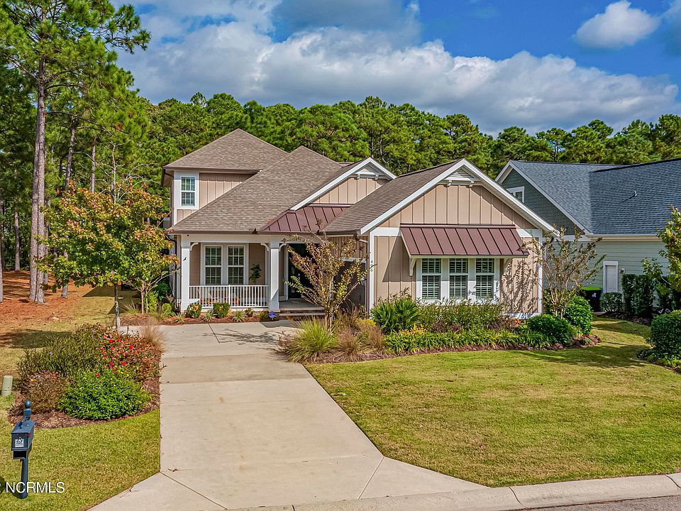 Combining modern style, luxury finishes, and thoughtful design, this Arthur Rutenberg custom build, located in the gated community of Waterbridge, is not to be missed. With too many upgrades and special touches to list, you can't help but imagine yourself living in this 4-bedroom, 3.5-bathroom beauty. Starting from the wide and welcoming front porch, and continuing the moment you walk through the front door, you'll appreciate the openness of the floor plan as you're greeted by high ceilings, gorgeous archways and 20' tile flooring with tile accents. The foyer gives you an opportunity to showcase your own unique style, with gallery walls and accent lighting to spotlight your personal art collection. On the first level you'll find a split bedroom floor plan with the master bedroom on one side and another conforming bedroom (most recently used as an office) on the other, both of which have luxury vinyl plank flooring.The master bedroom's tray ceiling with batten board accent will certainly catch your eye, as will its ensuite that you'll never want to leave.It features his and hers vanities, a soaking tub, a walk-in tiled shower and walk-in closet. Even doing the laundry becomes convenient in this home! The laundry room has plenty of space for a side by side washer and dryer, a large deep sink, plenty of cabinets and countertop space, and a walk-in coat closet just beyond the door, adjacent to the drop zone with built-in storage and entrance from the garage. The side-load garage has a mini-split air conditioning unit and epoxy flooring, as it has been mostly used as an at-home gym.Beyond the bedrooms on the first level are the kitchen, dining and main living areas, all blending into one another for the perfect entertaining space. The kitchen, with its large work island, high end stainless steel appliances, granite countertops, ample cabinetry, subway tile backsplash and large pantry, is any cook's dream.