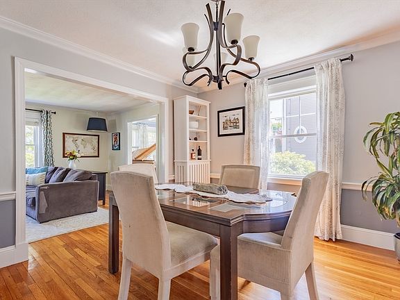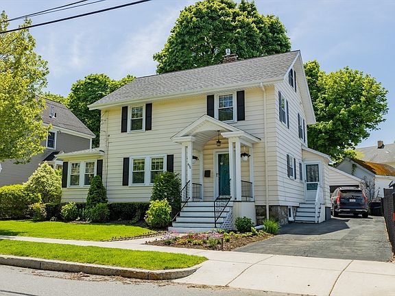 Stylish & spacious Colonial tucked into a picturesque neighborhood within walking distance to schools and the common! Beautiful period details combined with modern amenities and renovations! This is the single-family home you've been waiting for! The top floor living area features four corner bedrooms, a full bath, and access to the spacious walk-up attic. Main floor features a lovely entrance way connected to a large LR and DR with a sunny office space! Perfectly setup for entertaining! The backside of the main floor has a beautifully renovated kitchen with island, new appliances and a full bath! Enclosed porch opens up to a beautiful deck looking out at the peaceful backyard. Extra 430sqft of finished basement with living room and full bath. Meticulously maintained landscaping and a large, detached garage make this a wonderful purchase! Too much to list, come take a look!