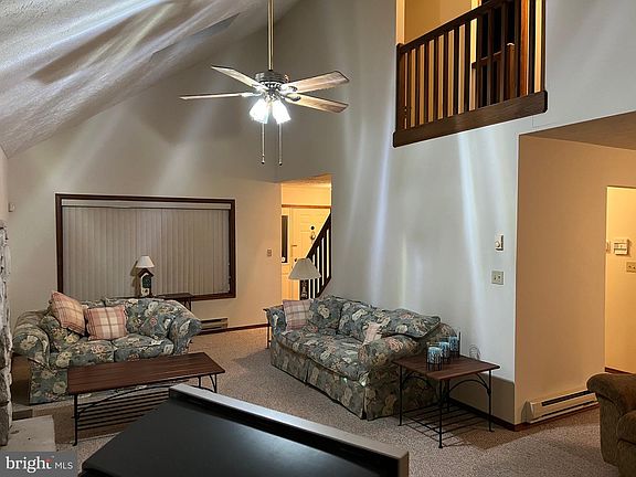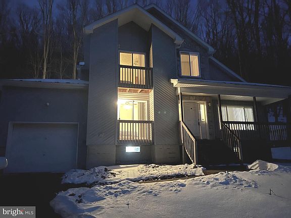 3 bedroom 2 bath home with open floor plan in the private, gated community of Eagle Rock Resort in the Blue Mountains of PA. This well designed home features wrap around covered front porch, rear patio with access from either the sun room or dining room. There is a also a 1st floor bedroom with double closets. The large 19 x 20 living room boasts vaulted ceilings and a stone fireplace and leads to the four seasons sun room. The island kitchen opens up to the dining room with sliders to rear patio. The 2nd floor has balcony that overlooks the living room. The main bedroom on the 2nd floor has walk in closet and large main bath with double sink, Jacuzzi tub and stall shower. This bedroom also has a Juliette balcony overlooking the mountain. The 2nd floor has another bedroom with large closet and ceiling fan. This home also has a full unfinished basement with high ceiling waiting for your finishing ideas! There is also a 1st floor laundry room and attached garage. Eagle Rock is a four season resort that offers many amenities including, 2 golf courses, ski and snow tubing, spa, equestrian center, lake, beach, kayaking, indoor and outdoor pools and more! You will always feel like you are on vacation.
