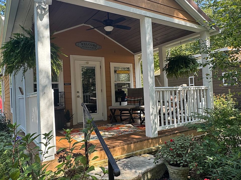 Charming Tiny Home in Gated Community Near Lake Burton- perfect retreat for escaping crowds and enjoying nature! Nestled in the scenic North Georgia mountains, this beautiful home is located in the gated community of Sugar Mill Creek at Lake Burton. Just minutes from the lake, this home offers a perfect blend of comfort, nature, and convenience. Take a stroll next door and enjoy the incredible menu and live entertainment at Bleu Canoe. Home Features: Spacious kitchen with solid wood cabinetry, ample counter space, plenty of storage, stainless steel appliances, and a stylish farm sink. Large island with built-in electrical outlet-great for food prep or casual dining. Perfect for entertaining. Bright living area with abundant natural light and windows overlooking the surrounding woods. Enjoy the spacious front porch and custom iron handrail leading down the stone steps. One bedroom and one bathroom, plus an efficient stacking washer and dryer. Expansive loft ideal for multiple beds or additional storage. Two mini-split units for year-round comfort. On-demand propane hot water heater. Gutter system with leaf guard. Outdoor Living: Beautifully landscaped garden with mature trees offering shade and vibrant fall colors. Private backyard with a peaceful seating area and BBQ grilling space-perfect for enjoying the sounds of the babbling creek. Quiet and spacious yard in the back for playing games. Community Perks: Lot lease includes: water, sewer, garbage, grounds maintenance, use of clubhouse and access to a dog park. Cozy clubhouse provides a beautiful space to enjoy the indoors or outdoors with two large-screen TVs and inviting lounge areas. High-speed fiber optic internet available. Close to Clarkesville, Clayton, and Helen-plus countless hiking trails, waterfalls, and local wineries This serene and secure setting is ideal for weekend getaways, a full-time residence, or a peaceful retreat. Come experience mountain living at its finest!