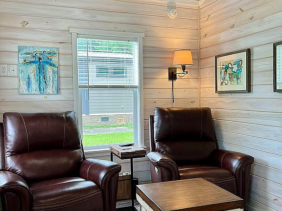 Looking for a quiet and peaceful retreat in the beautiful North Georgia Mountains? Look no further than this charming 2 bedroom,1 bath Park Model Cabin with Shiplap Walls and Vaulted Ceilings throughout this one story home! As you step inside from your rocking chair front porch, you'll find a bright open living space with windows galore surrounding a spacious living and dining area. The fully equipped kitchen, with full size appliances, is perfect for entertaining family, friends and neighbors. This home boasts two, yes TWO, full-size, comfortable bedrooms that can sleep 5 easily and a bath with a large walk in shower. With all of the amenities of a larger home, including a washer & dryer, and two highly efficient mini-split air/heating systems, you'll love the comfort and convenience of this cozy abode with plenty of room for full time living, or a perfect spot for a serene getaway. Outside you will find a large and private, newly cleared back yard that will easily support a deck, and/or shed. This home is located next to green space with a fire pit for your enjoyment. Don't miss your chance to own this lovely property in the North Georgia Mountains! Sugar Mill Creek at Lake Burton is a private, gated, resort-style community with 51 park model tiny home sites over the 12-acre property. The community is sure to impress, offering a Dog Park, a Clubhouse on the Property, Streams Throughout, Private Driveways and a nearby Marina for Lake Access. It is conveniently located near Lake Burton, Laprades Marina, Moccasin Creek State Park, and several local restaurants, and is perfectly situated between Clayton, Helen, and Clarkesville, Georgia. Adventure awaits with walking trails and waterfalls galore and plenty of opportunities to immerse yourselves in the rich history of Rabun County. Call for showing anytime, you will need to be buzzed in upon arrival. Buyers Agent Protected.