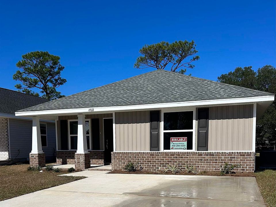 Completed New Construction Home*** Welcome to Muldoon Pointe, a new Adams Homes subdivision. Located just 15 minutes to NAS. . Brand new construction and waiting on you. At 4960 Muldoon Pointe Rd. you will find a beautifully constructed 1515 sq ft 3 bedroom 2 bath cottage home that has everything a home buyer is looking for. As you approach the home from the street, prepare to be wowed by this popular floorplan. The 1515 Plan is a very open and inviting plan that has a cute covered front porch. As you enter the home you will be amazed at the massive living room with ceiling fan. There is vinyl plank flooring throughout with carpet in bedrooms only. The living room carries you into the kitchen and dining room. Within the kitchen there are stainless steel appliances and plenty of cabinets a large single sink with Moen faucets. Three large windows look out to the back of the home with a 10x14 patio for a grilling or sitting area. The Master Bedroom sits off of the dining room with a box ceiling, ceiling fan and spacious closet. The Master Bath has a double vanity, shower/ tub combo. The two spare bedrooms are ample in size with walk in closets. Within one hall, you have a coat closet prior to entering the bedroom. Within the other hall, there is the spare bath with single vanity and a shower/ tub combo as well as the laundry area with washer and dryer hookups and linen closet. Don't delay because with this location and price point, this adorable home will be gone before you can blink an eye. SAMPLE FLOORPLAN PHOTOS SHOWN AND ARE NOT A TRUE REPRESENTATION OF ACTUAL HOME