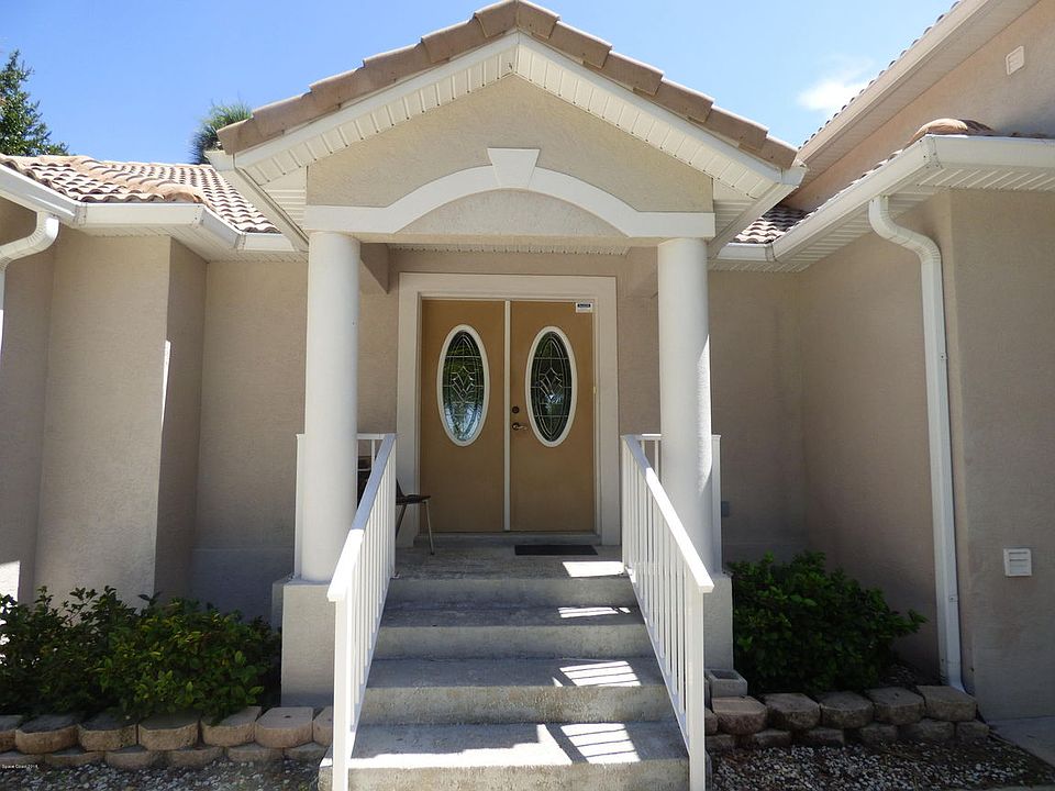 1.9 acres with 150 ft Direct Indian River Frontage. Dock has 4200 lb covered boat lift with remote & sun/observation deck to view missile launches. Take your boat south to the Barge Canal to Port Canaveral & Atlantic Ocean or north to Haulover Canal to Mosquito Lagoon, New Smyrna Beach & Ponce Inlet. This 2002 Block home has a barrel tile roof. Master is first level with patio & river view, double vanities, jetted tub & shower. Bedroom 2 has river view and patio. 4th bedroom is upstairs, 1/2 bath & private balcony. & could be game room, office ect. Great room has vaulted ceiling and huge screen patio. Kitchen has river view & patio. Appliances include refrigerator, range /oven, dishwasher, microwave, washer & dryer. 884sf garage has room for workshop, cars, boats ect. Florida Living...