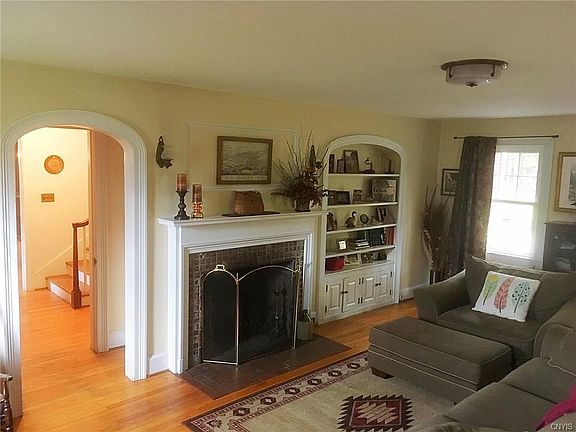 Beautiful 4 bedroom 1 1/2 bath original colonial on a large village lot. This home welcomes you with a cozy entry with built in bench and foyer with a grand staircase. There are original hardwood floors and woodwork throughout, a wood fireplace, built-in book shelf and china cabinet, and a large sun room. The master bedroom features a large built in custom closet including a shoe closet and another bedroom has a natural cedar closet. Relax and enjoy the private fully fenced back yard on the deck or new patio. The roof is new and the windows were recently replaced. The 1 car garage, shed, and full attic and basement offer plenty of storage options.