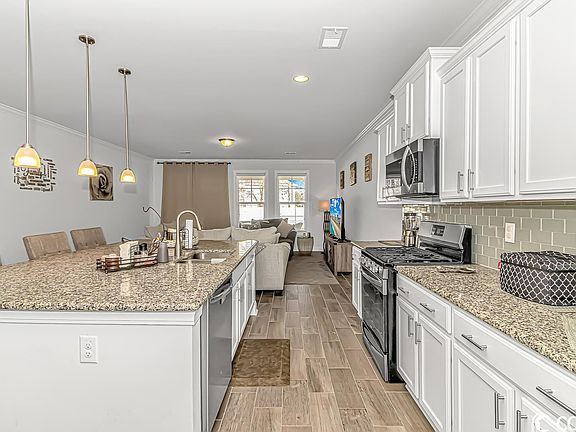 Plenty of room for the whole family! This Tillman E is a slightly used second in near perfect condition. Home boasts 5 bedrooms, 3 full baths 1 half bath and an attached 2 car garage. Master bedroom is down with all others on 2nd floor. Home has large up and down stairs family rooms with a 2nd floor laundry. Cozy screen porch that over looks a fully fenced in back yard, perfect for your furry family members. Home is conveniently located off Hwy 707 and Holmestown Rd. Plenty of restaurants and shopping, minuets to the beach. Community pool and amenity center located near by.