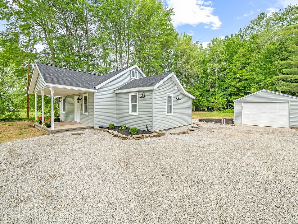 Looking for a cozy country cottage! This 2 bed, 2 full bath home has been completely renovated from the ground up. With high end finished throughout, you'll be living large in just under 1200 sq ft. Updates included all new electrical and plumbing, new HVAC, new roof, and all new windows and insulation. The thoughtful design maximizes the space, with the vaulted ceiling in the living room creating a light and airy space. While the custom kitchen with stunning quartz counters and all new appliances invite you to indulge in culinary creativity The addition of the second story bonus room adds useful space for a third bedroom, office, or easily accessible storage. The primary bedroom features an en suite bath with walk-in shower, and the additional full bath on the main level has a tub/shower combo. The 1 car detached garage has been fully finished as well, making even more space for storage. Sitting on 1.25 acres there is plenty of space outside to enjoy the built-in fire pit, or add the barn you've always wanted.