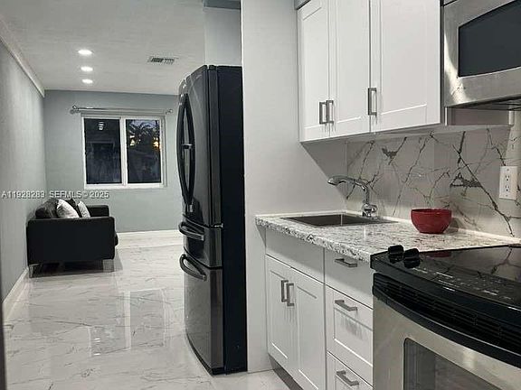 Beautifully remodeled 700 sq ft unit located just minutes from the Hard Rock Hotel & Casino, offering an exceptional opportunity for short-term rentals (Airbnb allowed) or corporate housing. This modern space features a bright living area, a fully updated kitchen with stainless steel appliances, sleek cabinetry, and elegant marble-style flooring throughout. The unit includes 2 bedrooms and 1 completely renovated bathroom with a glass-enclosed shower and contemporary finishes. Enhanced with impact-resistant windows and doors, LED lighting, and a private entrance, the unit provides comfort, security, and privacy. It also includes assigned parking for added convenience. Washer and dryer are available one day per week. The unit is offered unfurnished, making it ideal for tenants who want to customize the space to their style. With its prime location, modern upgrades, and excellent flexibility for rental use, this property is a perfect choice for anyone seeking a clean, updated, and move-in-ready home in a high-demand area.