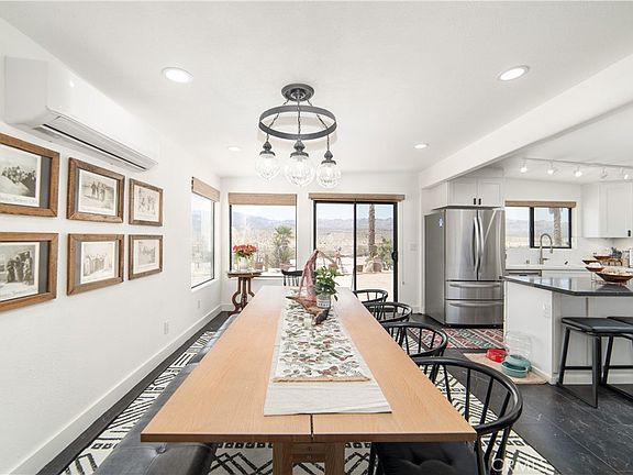 This gorgeous home and casita have been completely remodeled in stunning fashion. The tax rolls say 1966 but the inside is brand new. Enter to spacious great room with beautiful block fireplace. Kitchen is incredible from end to end! Kitchen features include large breakfast bar island and lovely white cabinetry. One wall has floor to ceiling cabinets!. Stainless steel appliances are included. Bedroom is very spacious with sliding door to the exterior. Bathroom features beautiful rock floor shower with sliding glass doors. Casita is small but manages to fit all the comforts of home. There is also a detached garage. This property has a well! House and casita are fenced in chain link to allow the surrounding mountain views to be enjoyed. Located just a couple minutes off paved Lear Road and just minutes from downtown 29 Palms with shopping and restaurants. This property is also just a few minutes drive to Joshua Tree and famous Joshua Tree National Park. You must see this absolute gem to appreciate! Seller will be keeping some of the artwork but this amazing property can be sold completely furnished just less a few items.