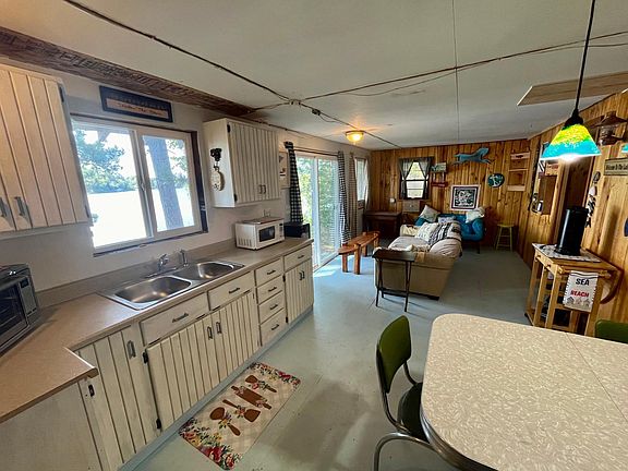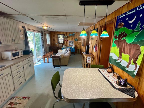Pine tree cabin at the end of the road with Sandy shoreline and beautiful view and trees. Everything stays with the place that is there. Adjacent to Forest lands, with super fishing and trails for ATV near by and only a few miles to Antler lodge restaurant and store. Nice package!