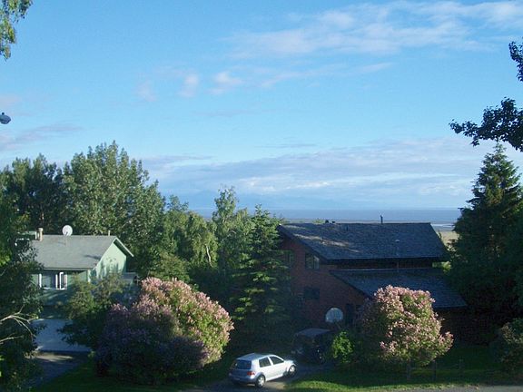 VIEW of Inlet-Utilities Included. Upper unit with private entrance and spectacular inlet view. 3 bedroom (1 is office/bedrm), 2 baths, fireplace, tiled floors, washer/dryer hookup, and single car heated garage. No Smoking - No Pets. Call (907) 240-1828 cell or (907) 248-2508 hm.