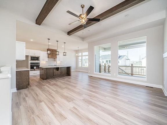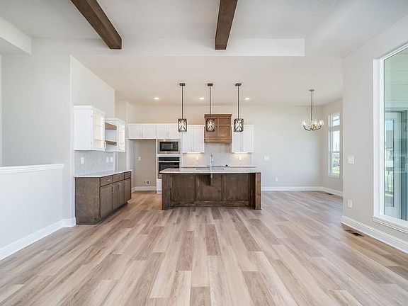 Absolutely gorgeous new design by Moeder Construction. Offering 1556 square feet on the main floor, we welcome the Hanna II plan to the Coves. When entering the home there is a beautiful custom bench and coat closet for guests. Moving into the living room enjoy the large custom built-ins with cabinets along the electric fireplace wall. Such a functional creative design and layout, that feels warm and cozy The fireplace is custom with a large mantle and cohesive with the rest of the room. Large windows flow the natural light through the space of open concept. Large beams running through the ceiling completely adds to the design of the space. In the kitchen, enjoy a large island for entertaining and perfect for prepping food. Enjoy a large coffee/ wine bar that's perfect for buffet style serving guests, or just a quaint floating shelf wall for decorative items to display with lower cabinets. There is so much kitchen storage, not to mention a walk-in pantry and custom made range top hood. The laundry offers a custom bench and folding table . Don't forget the spa like master suite with gorgeous vaulted ceilings for a grand appearance. There is double vanities in the master bathroom, floor to ceiling tile in the shower with a bench. Entertain on an oversized covered deck or concrete patio that extends close to the full length of the house. Information is estimated and not guaranteed. The options and pricing are subject to change without notice. There is a mailbox fee paid by the owner at closing.