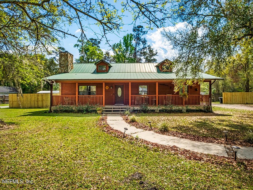 Welcome home to this 3 bedroom 2.5 bathroom concrete block home on a 1-acre lot. Spacious living for a family. Plenty of room to park your boat, RV or build a pool. The back porch offers a great outdoor entertaining area that could be enclosed with plenty of room to add an outdoor kitchen. Enjoy our beautiful Florida weather while relaxing on the front porch taking in the sights & sounds of nature.The indoors offers a vast open kitchen and living area with a wood burning fireplace.The detached garage is plumbed & can be easily converted into a mother in law suite or recreational room.All of this right down the road from some of Florida's highest ranking schools.This is an incredible location close to amazing beaches, Historic St. Augustine with picturesque scenery & the best of Florida. Metal Roof. Half bath on back porch. Zoned Open Rural allowing Horses.