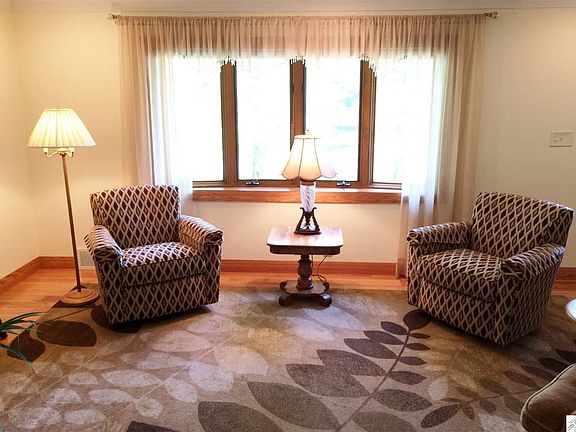 A rare find! Located on 5 wooded acres in Hermantown with city services, this immaculate, 4 bed, 2 bath, 2 car attached garage home is updated and has an open concept feel. The main level features a gorgeous, custom Red Birch kitchen with granite counters and stainless appliances, a large dining area, a spacious family room with a fireplace, a formal living room, 3 beds and a bath. The lower level features a bedroom, 3/4 bath, an office area, laundry, storage, and another family room that walks out to the private back yard. There is central air and newer mechanicals. Turn the key and move in! The chimney will be removed prior to closing.