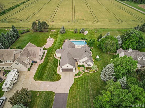 Pristine! Ranch in Starpoint school district situated in a park like setting! This home is the package deal! 3 Bedrooms w/ 2 full bathrooms. Large inviting dining room with cathedral ceiling for all of your holiday gatherings! Huge Great Room! Den w/ pocket doors perfect for home office. Open eat in kitchen w/ corian counters & island for entertaining! Primary bedroom ensuite w/ jetted tub. First floor laundry. Fabulous yard- fenced in. In ground pool. Beautifully designed covered patio w/ extended patio. Plenty of grass space beyond fencing w/ shed. Taxes based on assessment of $317,000.00. New tentative assessment will be $333,000. Town of Cambria with Lockport mailing address. Family rm & den addition in 2015. Central vac does not extend to addition. Roof 2015. Shelf in dining room is excluded. Pool: 2015 Colley -"Bahama model" 36x18 Salt Water, Heated. Liner 3-6 feet deep. Colley Pools opens & closes pool. Scheduled closing is 9/11/24. Farmer behind property rotates growing corn, soy and wheat. Furnace 2011, AC 2014, Roof 2015, HWT 2023, Offers due Thursday, June 27, 2024 at 11:00 am.