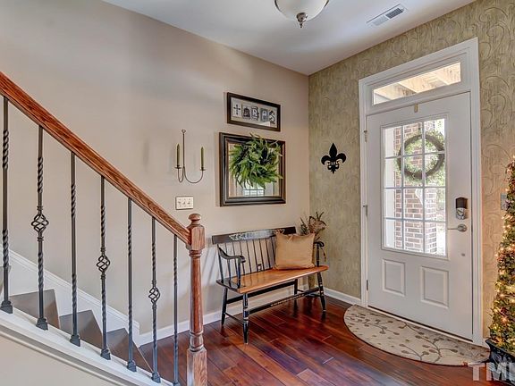 Immaculate & move in ready end unit townhome in prime Cary location! Loaded with upgrades! 9 ft ceilings. Wide plank hardwoods thruout main level. Large formal dining. Huge family rm w/ gas log fp. Gourmet kitchen offers granite tops, s/s apps (gas range) & tile b-splash. Lower level living rm w/ full bath (could easily be converted to 4th bedrm). Spacious master suite has granite top dual vanity, soaking tub w/ separate tile shower & WIC. Lots of storage. Fantastic front porch. Back deck overlooks woods!
