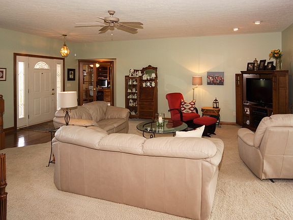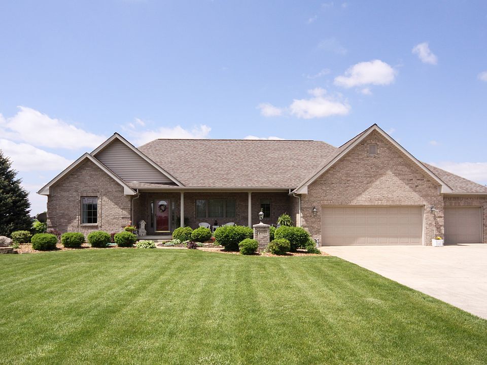 Quiet country living at it's best! Custom built brick ranch in meticulous condition. Kitchen w/ hardwood floors, all appliances and new granite. Large 2nd BR with w-I-closet. 3rd BR is being used as office. Huge master suite with double sinks, Jacuzzi tub, sep shower and w-I closet. Fin bsmt has egress window, rough plumbed for bath and wired for sound system. The oversized attached 2 car garage and 30 x 32 pole barn is a dream for men. 2 covered porches for watching the sunrise and sunset.