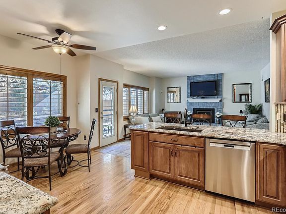 New Price! Welcome to this beautiful meticulously maintained original owner home, nestled in the Woodgate community in Aurora, Colorado. The open floor plan offers approximately 2130 square feet of finished living space, with attractive wood shutters and newer windows throughout the entire home. From the front door, you're greeted with hardwood floors, and a spacious formal living room and dining room, with vaulted ceilings. The recently updated $50K gourmet kitchen features a cozy eating nook, gorgeous maple cabinets with under mount lighting. The kitchen shines with beautiful granite countertops and tile backsplash, newer Bosch stainless-steel appliances, and wood floors. The great room features tile floors, a brick accented energy efficient gas fireplace and is the perfect cozy spot on a chilly Colorado evening. The 4th bedroom/office is located on the main floor, with a large walk-in closet, high ceiling and tile floors. The second floor includes the vaulted primary suite with wood floors, large walk-in closet and a 5-piece bathroom suite, complete with an air jetted tub. Two additional bedrooms and a large full adjoining bathroom are upstairs. The large cement patio in the backyard is surrounded by mature landscaping and is the perfect spot to sip your morning coffee, entertain or to enjoy the Colorado sun. The low HOA fee covers trash, recycling and the neighborhood pool. Award winning Cherry Creek Schools.