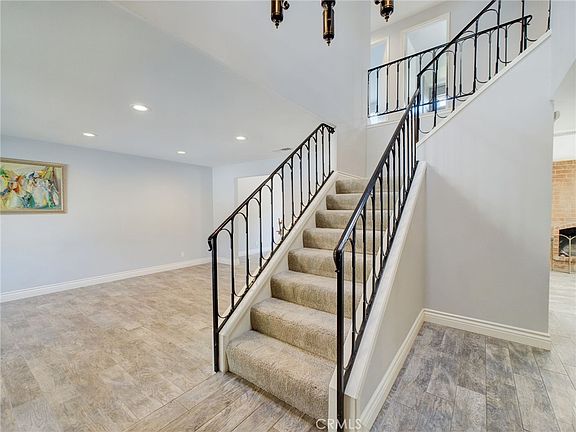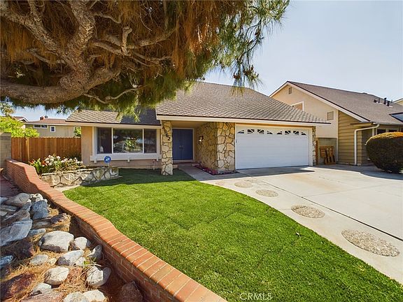 This lovely Ponderosa 2-story home has been meticulously remodeled and is situated in a coveted La Palma neighborhood. It features 4 bedrooms 2.5 bathrooms & 2,104 sq ft of living space. From the moment you step through the double doors, you will be impressed by the stunning upgrades that this home has to offer. The living and dining areas are bright and airy, creating a welcoming ambiance. The kitchen is a standout feature of the home, boasting stone countertops, recessed lighting, white cabinets with soft closures, pull-out shelves, and stainless steel appliances, including a 5-burner gas cooktop, double oven, and microwave. The kitchen flows seamlessly into the family room, which features a brick fireplace and a dry bar with shelving, making it an ideal space for entertaining. The downstairs area and bathrooms are tiled throughout, and the home is equipped with central air conditioning and heat. There is also a convenient powder bath downstairs. Upstairs, you will find a spacious master bedroom with recessed lighting, 2 closets, and an ensuite bathroom with a walk-in shower. There are 3 additional good-sized bedrooms, as well as an upgraded hall bath with dual sinks and a tub/shower combo. The oversized lot features a backyard that is a perfect outdoor space with a patio area and grassy area, including fig and tangerine trees, all enclosed with a block wall fence and even includes electrical provisions for a hot tub. Other notable features of the home include smooth ceilings, recessed lighting, dual-pane windows, panel doors, & copper plumbing. The roof is approximately 6 years old, and there is direct access to the 2-car garage which offers loft storage accessible via a pull-down ladder. The home is located within the boundaries of the highly-rated Kennedy High School and nationally-ranked Oxford Academy (with testing requirements), making it an excellent option for families with school-aged children. This beautiful home is not to be missed!
