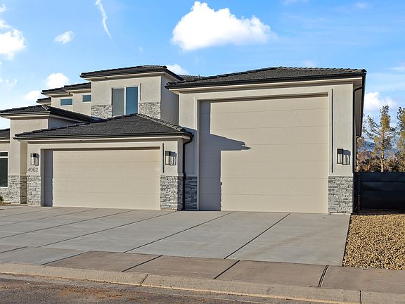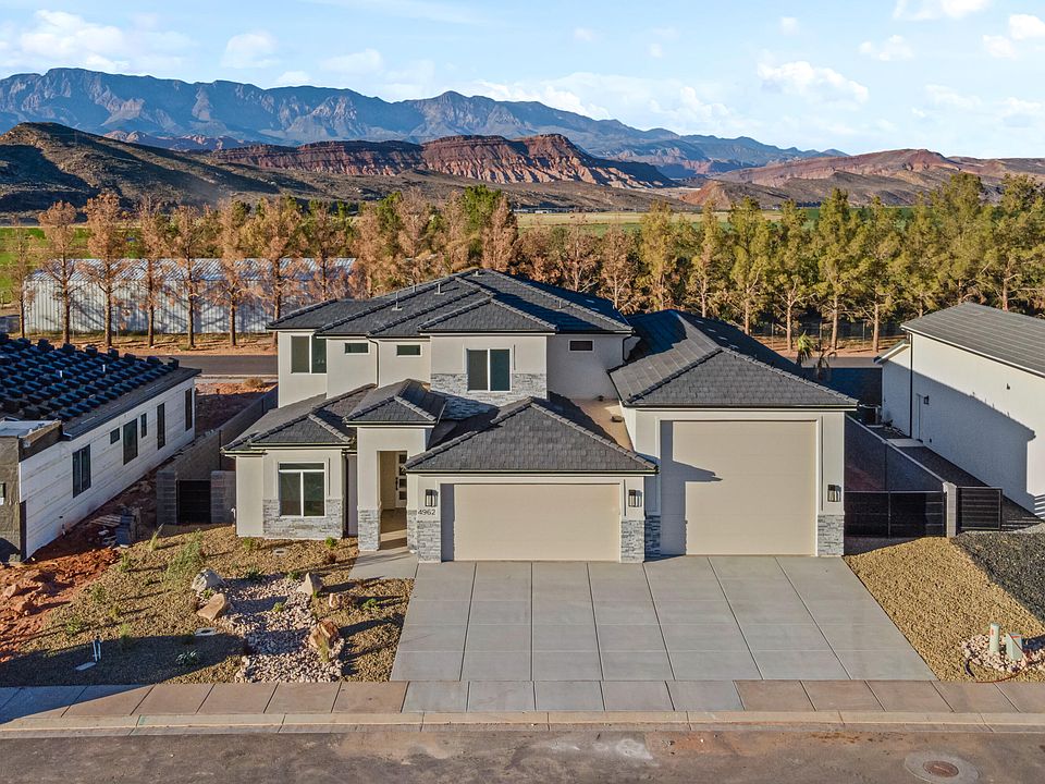 This beautiful home by Resilient Contracting offers a massive RV garage bay with an epoxy coating on the floor. The door is 16' wide x 14' tall, and the RV bay is 63' deep. With nearly 1,800 sq ft of garage, you could park two motorhomes in there and still have room for more toys! The two-car bay is 24' deep, large enough to park a 4-door pickup truck and still have room to walk around it. The house backs to open space, an orchard and fields, and it offers stunning panoramic views of Pine Valley Mountain and southern Utah's iconic sandstone formations. Tucked away on a quiet street, you'll love the solitude this area offers, and yet, it is only a few minutes from the world famous Sand Hollow reservoir, sand dunes, and the outdoor playground that is Southern Utah.