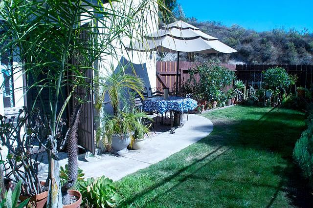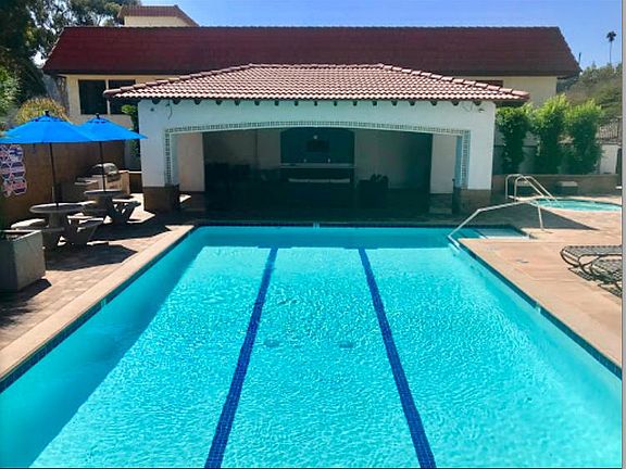 South-facing dual-master end unit with 2-car attached garage, seconds from the 8. Full bathroom with walk-in closet in each master suite. This home is attached to the brand-new Del Cerro Tennis Club and tenant has unlimited use of the tennis courts and pool/hot tub. Semi-private yard maintained by HOA.