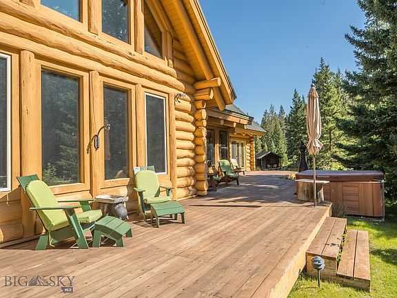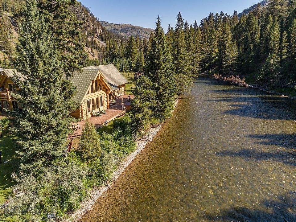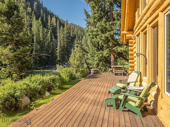 This is Big Sky's finest fishing property, just steps from the Gallatin's world class fly-fishing. This section of river features excellent fishing opportunities, where one can fish to rising trout and match the hatch from the property. Entertain and enjoy the splendor of the Gallatin from this 2,234 sf wrap-around deck. Surrounded by alpine splendor and natural beauty this 5.32 acre riverfront property is one of a kind. A true legacy property, the custom log cabin is 3,200 sf featuring a river-rock fireplace in the open concept great room with vaulted ceilings, logs from western Montana, views of the river from nearly every room plus amazing outdoor spaces to entertain. Additional living space/caretakers quarters above the detached garage. The property features a riverside recreation cabin the kids will love. The property boasts 990 feet of river frontage where boats and kayaks can be launched from the property for a leisurely float down to Deer Creek. 15 minutes to Big Sky Resort.