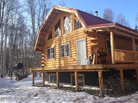 Serene log home on Sheep Creek Slough. Fish in your backyard! Upscale gated subdivision with very few homes, boat launch and trails galore! Excellent weekender or full time residence. Includes 672sf partially finished basement with a third potential bedroom. Wood stove in living room. The true Alaskan home, but with all the modern conveniences. The home that says...are you ready to relax?