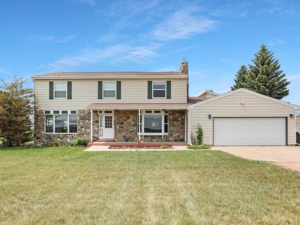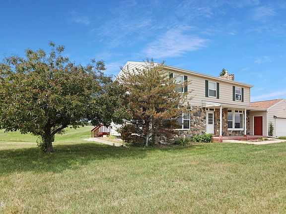 Rare opportunity to own this sprawling two-story home on 40+ acres with amazing views, rolling hills and wildlife just minutes from town. If you are looking for a spacious and rustic home with privacy and nature, look no further than this incredible four-bedroom, four-bathroom property. This home boasts over 5,300 square feet of living space with plenty of large windows that let in natural light and scenic views. The main floor features a formal living room, formal dining room with built ins, sitting room off the kitchen with fireplace, large sun room with access to the large deck with stunning views of your property, kitchen with lots of potential for expanding, powder bath, inviting laundry room with lots of storage, and a family room with vaulted ceilings and custom glass cabinets designed to show off your treasures. The second floor has 4 bedrooms, including the spacious master suite which has a walk-in closet and an ensuite bathroom with a jetted tub and a separate shower. There are an additional three bedrooms, and full bathroom down the hall. The walk out basement has a full kitchen, 3/4 bathroom, large family room, huge den with built in bookshelves and there is plenty of storage in the multiple storage rooms-one includes a large gun safe. This tree lined property also includes an attached 2 stall garage, and numerous outbuildings which include a detached 2 stall garage, a heated whelping house with water and kennels, a detached 2 stall heated RV garage with 12 foot door and workshop, heated building used for shooting targets, and shed on the back of the property used for breeding pheasants and a lean-too for horses. The house has the option for well or rural water and the shingles were replaced last fall and the home also comes with a brand new 26000 Generac generator that the buyer will need to install. This home is truly a dream come true for anyone who appreciates the peace and tranquility of living in the country, while being close to town