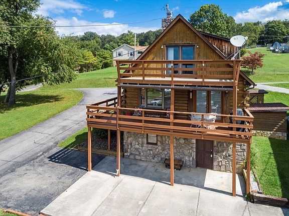 Discover the perfect retreat at our CLAYTOR LAKE Log A-Frame Home! This stunning property offers 3-4 BR's & 2.5 baths, providing ample space for all your needs. Enjoy the breathtaking beauty of Claytor Lake w/a MAGNIFICENT DIRECT VIEW from the comfort of your own home. This gem comes complete w/TWO Trex Decks, perfect for soaking up the scenery. Boating enthusiasts will love the convenience of a Private Boat Slip &Access to the Boat Ramp, both included w/the house. For those w/a penchant for cars & storage, a Det Dble Car Garage awaits, w/2 garage door openers/16 x 31 Rec room or extra BR. Additional storage needs are met w/a handy Storage Building on the property. Cozy up on chilly evenings by the Stone Fireplace w/a stove insert in the LR. Paved DW adds convenience to your daily life. The Full Unfinished Basement offers possibilities for customization. Appliances-Rnge/Ref/DW/W&D Convey. Whether you're looking for a year-round residence, a vacation home or Airbnb - Come See this!!!