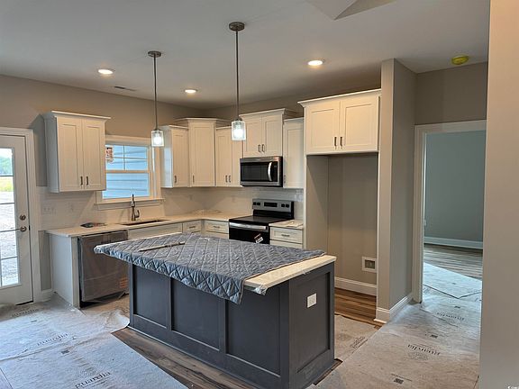 New Construction- 4 bedroom 3 bath home located on 0.50 acre lot- NO HOA- Open Great Room/ Kitchen concept- Master suite features tray ceiling, walk-in-closet, garden tub, shower, double sinks- Kitchen includes work island w/ breakfast bar, quartz tops, and stainless appliances- Covered porch- Easy access to Hwy 22 and north end of Myrtle Beach
