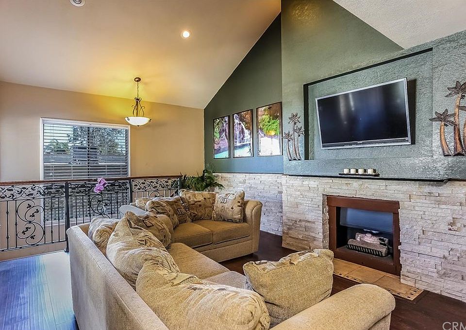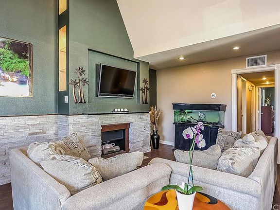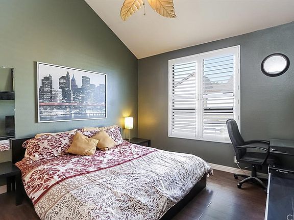 PRICE REDUCTION!! Beautiful condominium presents with 1049 square foot of living space and with 2 bedrooms, 1 bathroom and private 2 car garage. Resides in award winning school district of Anaheim Union School District, Kennedy High and Oxford Academy. Located in a private, gated community with pool and Jacuzzi. Many upgrade including all stainless steel appliances, laminate flooring, central air conditioning and heating and plantation shutter windows. Spacious living room area includes recessed lighting, vaulted ceilings and stone fireplace. A large kitchen presents solid wood cabinets, gas oven and stove top, and built in microwave and dishwasher. A spacious master bedroom presents with vaulted ceilings and walk in closet. A washer and dryer is included with its own private laundry room.