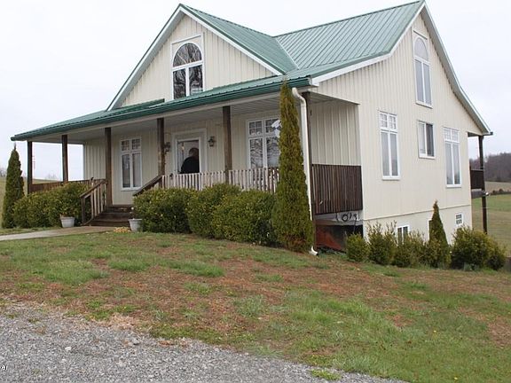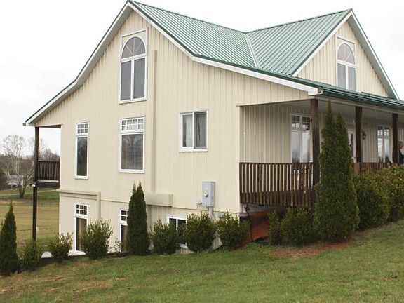 Beautiful country home w/ metal roof, covered front and rear porches, walk-out lower level has french doors onto a large patio overlooking part of the 30 acres of beautiful rolling countryside. This high efficiency home was built w/ structural insulated panels (SIPS), has three (3) high efficiency electric heat pumps; ceilings are mostly hardwood, flooring is hardwood, tile and carpeting; windows are insulated casement and sliders. Detached garage is a Morton and measures 45' long x 36' wide x 12' high.