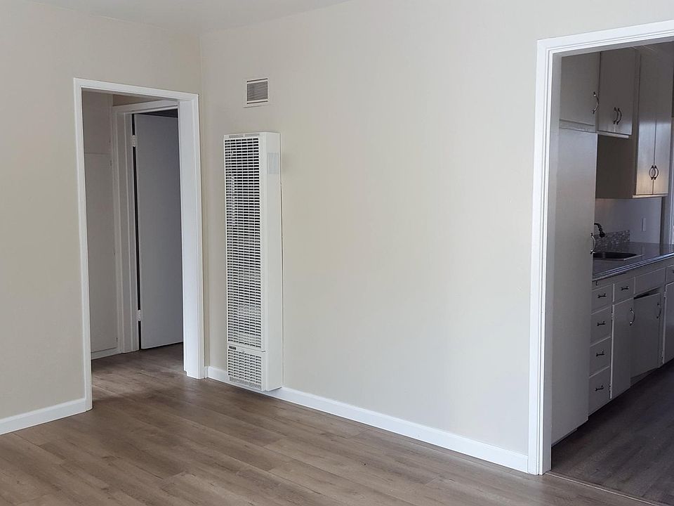 Small complex location, new flooring, new paint, new refrigerator, new wall heater. End unit close to community laundry room. Includes 1 carport space, water and trash included. No Smoking, no pets, 1 year lease. Available soon! 1 year lease