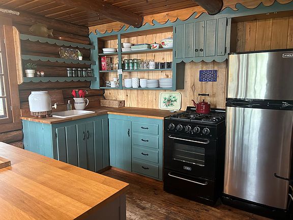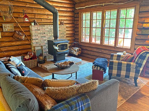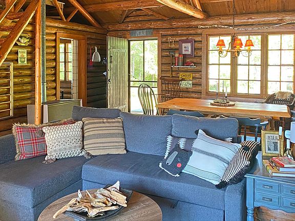 This well-maintained, fully furnished log cabin features a newer metal roof, large deck, and fire pit area. Large windows provide plenty of natural light and excellent lake views. An abundance of pine, maple, and birch trees offer privacy. A nice-sized garage offers lots of storage for boats, ATVs and more! The property also has a cozy, well-built cedar sauna for bathing & relaxation plus an outhouse for when nature calls. Built in 1950 using local tamarack logs, the interior is full-log construction with exposed trusses and wood floors. With a roomy 840 square feet, this cabin boasts an open floor plan with a kitchen, dining room, living room and bedroom on the first floor and a roomy loft area that sleeps 4. The kitchen includes a new (2019) propane range and refrigerator and butcher block countertops. Enjoying the cabin in the winter is easy with cozy evenings snuggled up by the woodstove. A supplemental propane heater provides additional heat on cold Minnesota winter days. The cabin is wired for electricity with lighting and outlets, powered by a gas generator. Down by the water, solid steps lead to private, firm, muck-free shoreline on Long Lake perfect for swimming, fishing, and boating. A boat lift, dock, and new Paddle North floating dock are included! According to the MN DNR, Long Lake is over 345 acres with a maximum depth of 34 feet. The lake is about 8 feet deep off the end of the dock, but drops to 20 feet a bit further out with good fishing right off the dock. The lake is home to many species including walleye, crappie, bass, perch, and northern pike. In the winter, the lake is great for ice-fishing and ice-skating. This cabin comes fully furnished and is beautifully decorated with vintage pieces and new items. Also included in the sale are a Honda gas-powered generator, a canoe, two kayaks, a grill, and a winch for putting in and taking out the dock. This beautiful, cozy cabin named "Petäjä" is ready for you to enjoy immediately! Come see just how great cabin life can be!