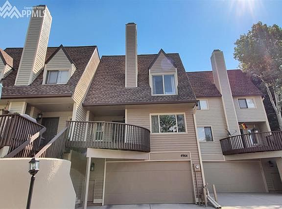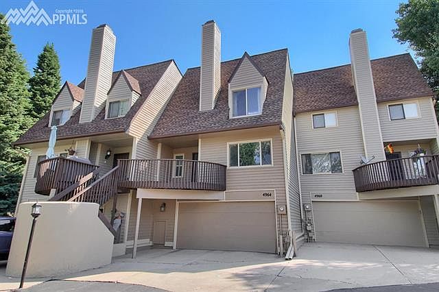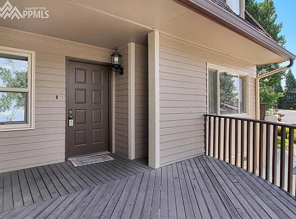Townhome with VIEWS! This peaceful property has panoramic views of Pikes Peak & Garden of the Gods. Surrounded by trees, a tranquil setting. Spacious living room with fireplace & vaulted ceilings. Separate dining room adjacent from kitchen. Sprawling master bedroom with seating area & large closet. A computer/craft room is an added bonus. Lower level can be used for bedroom or additional family room. Walkout to private back patio. Over sized garage with shelving. Complex offers pool & club house. Perfect for gatherings!