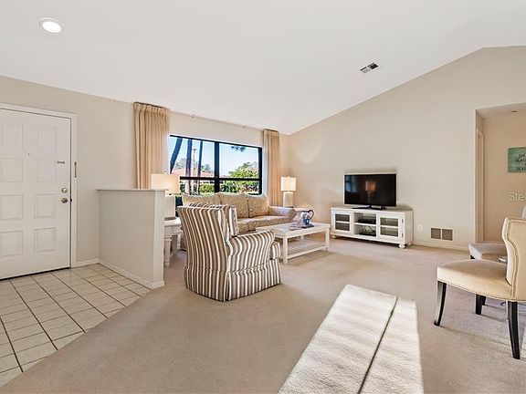 This cute-as-a-button Meadows home is perfectly ready to become your new seasonal retreat! Open the front door and you'll be greeted by high ceilings and an airy feel, with a spaciousness much larger than the square footage may suggest. The split-bedroom plan means enough separation to comfortably house your houseguests, and all three bedrooms are very nicely sized. Stainless appliances dress up the cozy kitchen, the guest bath doubles as a pool bath, and the master features a walk-in closet - this home is so well thought-out and has absolutely no wasted space! The large lanai has an ample covered area and you will love the pool's southern exposure - the best for maximum sunshine! A two-car garage with plenty of storage tops it all off. As a part of The Meadows, you'll enjoy access to miles and miles of trails, optional golf & tennis membership, and a warm & welcoming feeling in the community. And now all residents can frequent the pool and fitness center, no membership required...what could be better?!? With this ideal location, you'll be to the Mall at UTC in five minutes, downtown Sarasota in 12, and to the beach in under 20! The Sarasota Airport is just a short ride away, which will be perfect because this property is so lock & leave, you're free to roam! An excellent floor plan & use of space, a fantastic community, and a prime location; this home simply has it all and it is ready for you...