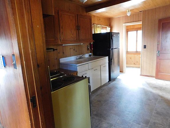 The authentic log cabin offers 2 bedrooms and 1 bath. There is a separate guest quarters which include a kitchen, living room, bedroom, bath, and mudroom with laundry. The other portion is a large workshop. This property offers plenty of space for your outdoor needs and abuts state land to the west and south. New seepage bed and septic tank were recently installed. The underground water lines have been recently updated to both the main cabin and garage. . Looking for extra storage? No problem, the pole barn offers plenty of storage space! You can see the stream from the property and there is a path that goes down to it.