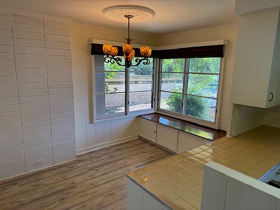 This "Mid-Century" marvel is over 1600 square feet and has TWO bathrooms and FOUR bedrooms. Unique architectural details include: An exterior front trellis, tray lighting and shelving in the living room, and a private lanai with garden views. Separate Laundry and Storage rooms off the covered lanai. The walk out basement is an opportunity for a workshop and is open to the large backyard with a Mango Tree and Bananas. The lot is a half acre and is zoned R-4 for an additional ADU - verify with the County.