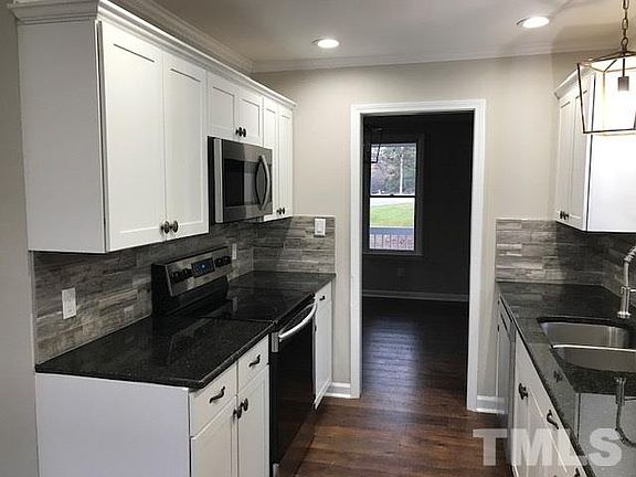 Home has been beautifully updated! New HVAC and roof, all new paint inside/out. Water resistant wood laminate flooring throughout main floor, white Shaker style cabinets, granite countertops, stainless steel appliances in kitchen are all brand new! Bathrooms have also been updated with gorgeous ceramic tile, new vanities, and plumbing fixtures. New light fixtures/fans throughout the home, along with LED recessed lighting in kitchen. All this on a near acre lot in a fantastic Wake Forest location!