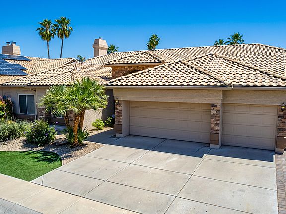 Energy-efficient residence with solar panels, basement & blue pool in Scottsdale! The delightful interior includes high vaulted ceilings, stone accents, arched doorways, wood-like floors, plantation shutters, & Roman pillars. Relax in the great room or family room w/fireplace! The gourmet kitchen has SS appliances, shaker cabinetry w/crown moulding, granite counters/backsplash, island, & breakfast nook. The oversized main suite offers space for all your furniture, private access to the Arizona room, & a spa-like bathroom w/dual vanities & walk-in closet. Discover a finished basement boasting two more bedrooms, a full bathroom, & a living area w/wet bar ideal for a home theater! Enjoy the Arizona room w/stunning pool & heated spa views, or head to the sunken Lanai, complete w/swim-up bar. Take advantage of the several acres of private HOA park that is less than a block away! This gem in the "magic zip code" awaits!