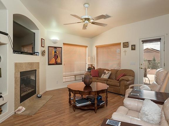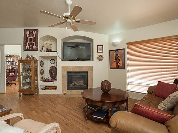 Here's a lucky find in Amante at VSF! Personalized touches such as the built in Entertainment Center with Fireplace, Bay Window with seat in the Master Bedroom, sliding glass doors from Master to patio, extended Garage with windows and custom built in Cabinetry, front Courtyard Wall, covered Patio and additional concrete slab for open patio all add value to this home. Pergo wood floors, carpeted bedrooms, wooden blinds throughout. Third bedroom has double doors - Could be a den! New garage door opener; extra gutters front and back/ Fenced back yard - safe for pets! Well maintained! Wonderful Community Club House, Pool and Workout Facility Brokered And Advertised By: Russ Lyon Sotheby's International Realty Listing Agent: Claudine Pinto