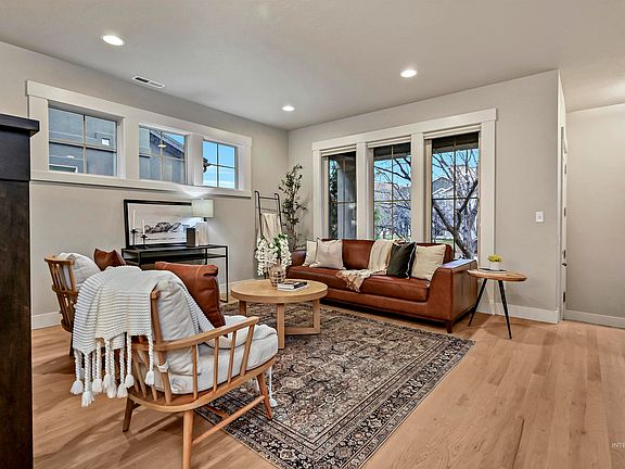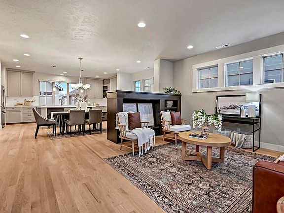 Exquisite 3-bedroom 2.5-bath Gem in Mill District at Harris Ranch. Nestled between the Boise River and Foothills, this home offers the epitome of the Boise lifestyle. Oversized windows with beautiful natural light fill the interiors and showcase custom cabinetry goes all the way to the ceiling creating a seamless blend of elegance and functionality. The dream kitchen boasts a 5-burner range, an oversized kitchen island, ample storage, and an open floor plan that flows into a dedicated workstation. The master suite is a true retreat with ample windows, a walk-in closet, and a dual vanity with quartz countertops. Hardwood floors throughout, a 3-car garage with storage, and a mudroom add to the appeal. Each neighborhood within Harris Ranch includes a community center with a swimming pool. Enjoy the ultimate convenience with proximity to restaurants, shops, the Greenbelt, and parks.
