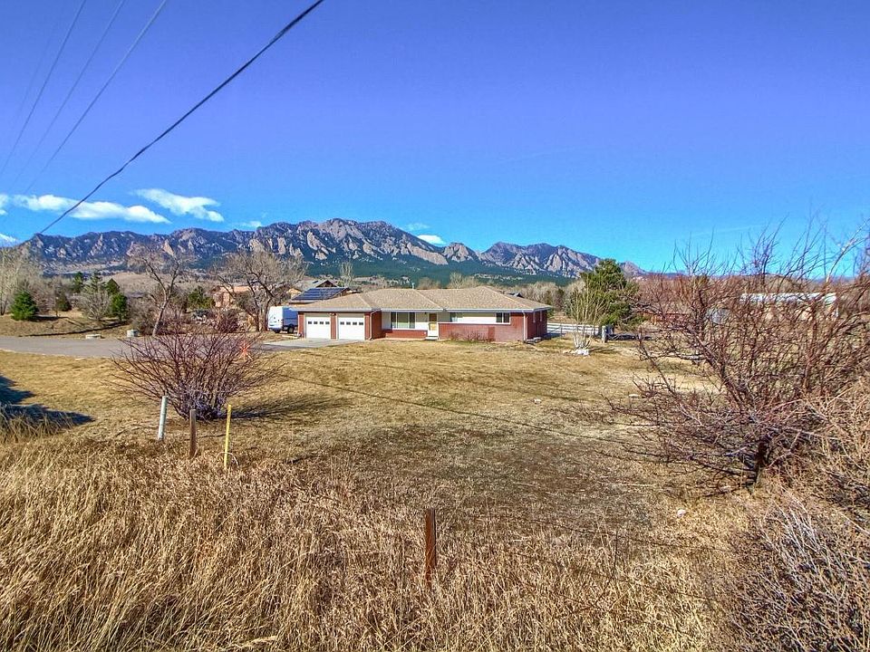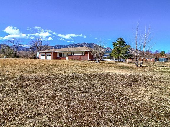 Beautiful ranch home situated picturesquely against the Boulder Flatirons! This wonderfully maintained ranch sits on nearly an acre of land that continues to maintain its original agricultural zoning. Inside the home you will find a tastefully updated kitchen and dining room with built-ins and a new set of Kitchenaid appliances. Original wainscoting is present throughout the living areas along with attractive hardwood floors. The design of the interior of the home features an open floor plan that maximizes Flatiron views and connects kitchen, dining, and family room all seamlessly to one another. Also featured inside the home are three bedrooms and two bathrooms, including a master bedroom with en-suite bath. Outside there is plenty of space to cultivate end enjoy with the added inclusion of current growing crops and an original barn and silo. You will not find another property like this available in the Boulder Market!
